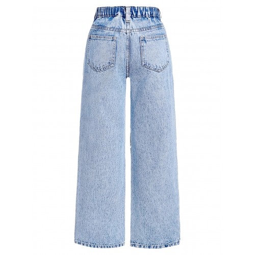Jeans for Girls Wide Leg Baggy Denim Pants Cute High Waisted Trousers Kids Casual Y2k Streetwear with Pockets 8-14Y