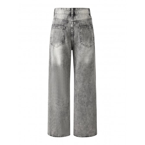 FEDPOP Girls Baggy Wide Leg Jeans, Elastic Waist Pull-On Denim Pants with Pockets, Casual Loose Teen Jeans, Gray, 12-16Y