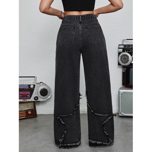 FEDPOP Girls Baggy Wide Leg Jeans, Elastic Waist Pull-On Denim Pants with Pockets, Casual Loose Teen Jeans, Black, 12-16Y